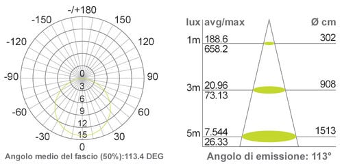 ** Caratteristiche Generali ** Applicazione: Per illuminazione Tempo di vita L70B50: 20000h Numero cicli di accensione: 10000 cicli Fattore di sopravvivenza: 0.9 Tipo nastro: Monocolore Colore Supporto: Bianco Tipo di led: smd 2835 0.5W n. Led al metro: 176 led/m Lunghezza max in cascata: 5m Rischio fotobiologico: Esente ** Caratteristiche di Illuminazione ** Colore: Bianco caldo Flusso Nastro Led: 2605lm/m Flusso @ 50cm: 1185lm CRI: 94 Angolo di emissione: 120° Warm-up (60%): 0.1s Fattore mantenimento flusso: 0.96 Uniformità colore (SDCM): 6 ** Caratteristiche Elettriche ** Classe energetica: F Potenza Nastro Led: 23W/m Potenza 50cm: 10.5W Potenza unità minima: 1.0465W Tens. funzionamento DC: 24Vdc Dimmerabile: si Alimentatore: Esterno (non incluso) ** Caratteristiche Sorgente Luminosa ** Temp. Colore: 3000K ** Caratteristiche Meccaniche ** Lunghezza nastro: 5m N. Led/taglio: 8 Lunghezza taglio minima: 45.5mm Larghezza: 5000mm Spessore: 1.3mm Altezza: 10mm Fissaggio: Biadesivo 3M Grado di protezione: IP20 Tipo di protezione: Nessuno Connessioni: Cavo libero ** Caratteristiche Termiche ** Temp. di funzionamento: -10 / 40°C