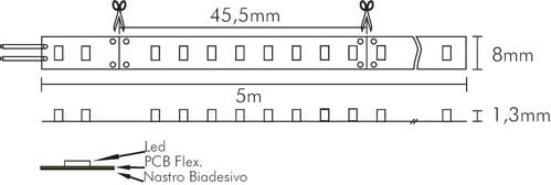 ** Caratteristiche Generali ** Tempo di vita L70B50: 20000h Fattore di sopravvivenza: 0.9 Tipo nastro: Monocolore Colore Supporto: Bianco Tipo di led: smd 2835 0.2W n. Led al metro: 176 led/m Lunghezza max in cascata: 5m Rischio fotobiologico: Esente **Caratteristiche di Illuminazione ** Colore: Bianco freddo Flusso Nastro Led: 1650lm/m Flusso @ 50cm: 750lm CRI: 90 Angolo di emissione: 120° Warm-up (60%): 0.1s Fattore mantenimento flusso: 0.96 Uniformità colore (SDCM): 6 ** Caratteristiche Elettriche ** Classe energetica: F Potenza Nastro Led: 14.4W/m Potenza 50cm: 6.6W Potenza unità minima: 0.6552W Tens. funzionamento DC: 24Vdc Dimmerabile: si Alimentatore: Esterno (non incluso) ** Caratteristiche Sorgente Luminosa ** Temp. Colore: 6000K ** Caratteristiche Meccaniche ** Lunghezza nastro: 30m Lunghezza taglio minima: 45.5mm Larghezza: 8mm Altezza: 2mm Fissaggio: Biadesivo 3M Grado di protezione: IP20 Tipo di protezione: Nessuno Connessioni: Cavo libero ** Caratteristiche Termiche ** Temp. di funzionamento: -10 / 40°C