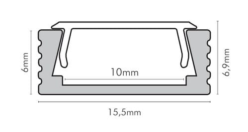 ** Caratteristiche generali ** Composto da: -n. 1 profilo di alluminio da 2m, -n. 1 copertura da 2m ** Caratteristiche Elettriche ** Potenza dissipabile (35°C): 15W/m ** Caratteristiche Meccaniche ** Lunghezza profilo: 2m Larghezza: 15mm Larghezza interna: 10mm Altezza: 6.9mm Grado di protezione: IP20 Materiale corpo: Alluminio Colore corpo: Naturale Diffusore: Policarbonato opaco ** Attenzione ** La copertura in Policarbonato (PC) è più sensibile alle temperature e ai raggi UV rispetto alla copertura in PMMA. Il profilo illustrato è un componente. Il suo corretto funzionamento con nastri led o moduli led dipende da importanti requisiti di installazione e dimensionamento. La potenza dissipabile è stata calcolata considerando una temperatura ambientenon superiore a 35°C in aria. Condizioni di installazione differenti devono essere opportunamente verificate da personale tecnico. Utilizzare la copertura solo con nastri led IP20. Alpha Elettronica declina ogni responsabilità per danni o malfunzionamenti derivati da un uso inappropriato del profilo.