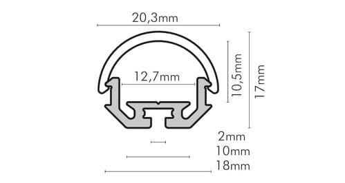 ** Caratteristiche generali ** Kit composto da: -n. 1 profilo di alluminio da 2m, -n. 1 copertura da 2m -n. 2 terminali di chiusura in plastica -n. 4 graffette di fissaggio in plastica ** Caratteristiche Elettriche ** Potenza dissipabile (35°C): 15W/m ** Caratteristiche Meccaniche ** Lunghezza profilo: 2m Larghezza: 20.3mm Larghezza interna: 12.7mm Altezza: 17mm Grado di protezione: IP20 Materiale corpo: Alluminio Colore corpo: Naturale Diffusore: PMMA opaco ** Attenzione ** La copertura in PMMA è più resistente alle temperature e ai raggi UV rispetto alla copertura in Policarbonato (PC). Il profilo illustrato è un componente. Il suo corretto funzionamento con nastri led o moduli led dipende da importanti requisiti di installazione e dimensionamento. La potenza dissipabile è stata calcolata considerando una temperatura ambiente non superiore a 35°C in aria. Condizioni di installazione differenti devono essere opportunamente verificate da personale tecnico. Utilizzare la copertura solo con nastri ledIP20. Alpha Elettronica declina ogni responsabilità per danni o malfunzionamenti derivati da un uso inappropriato del profilo.