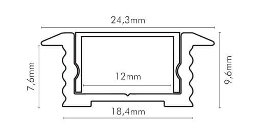** Caratteristiche generali ** Composto da: -n. 1 profilo di alluminio -n. 1 copertura ** Caratteristiche Elettriche ** Potenza dissipabile (35°C): 15W/m ** Caratteristiche Meccaniche ** Lunghezza profilo: 3m Larghezza: 18.4mm Larghezza interna: 12mm Altezza: 9.6mm Grado di protezione: IP20 Materiale corpo: Alluminio verniciato Colore corpo: Bianco Diffusore: Policarbonato opaco ** Attenzione ** La copertura in PMMA è più resistente alle temperature e ai raggi UV rispetto alla copertura in Policarbonato (PC). Il profilo illustrato è un componente. Il suo corretto funzionamento con nastri led o moduli led dipende da importanti requisiti di installazione e dimensionamento. La potenza dissipabile è stata calcolata considerando una temperatura ambiente non superiore a 35°C in aria. Condizioni di installazione differenti devono essere opportunamente verificate da personale tecnico. Utilizzare la copertura solo con nastri led IP20. Alpha Elettronica declina ogni responsabilità per danni o malfunzionamentiderivati da un uso inappropriato del profilo.
