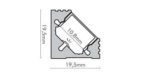** Caratteristiche generali ** Composto da: -n. 1 profilo di alluminio da 2m, -n. 1 copertura da 2m ** Caratteristiche Elettriche ** Potenza dissipabile (35°C): 25W/m ** Caratteristiche Meccaniche ** Lunghezza profilo: 2m Larghezza: 19.5mm Larghezza interna: 10.8mm Altezza: 19.5mm Montaggio: A parete, A soffitto Grado di protezione: IP20 Materiale corpo: Alluminio Colore corpo: Naturale Diffusore: Policarbonato trasp. ** Attenzione ** La copertura in PMMA è più resistente alle temperature e ai raggi UV rispetto alla copertura in Policarbonato (PC). Il profilo illustrato è un componente. Il suo corretto funzionamento con nastri led o moduli led dipende da importanti requisiti di installazione e dimensionamento. La potenza dissipabile è stata calcolata considerando una temperatura ambiente non superiore a 35°C in aria. Condizioni di installazione differenti devono essere opportunamente verificate da personale tecnico. Utilizzare la copertura solo con nastri led IP20. Alpha Elettronica declina ogni responsabilità per danni o malfunzionamenti derivati da un uso inappropriato del profilo.