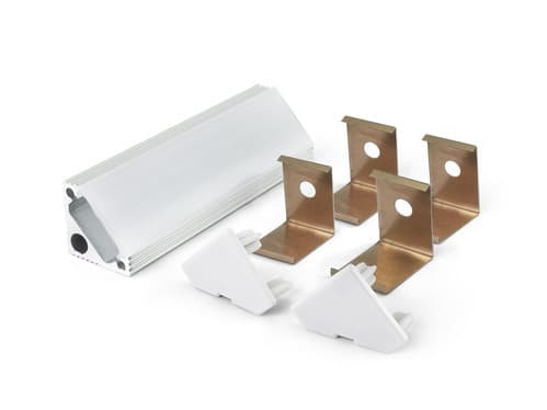 Il profilo illustrato è un componente. Il suo corretto funzionamento con nastri led o moduli led dipende da importanti requisiti di installazione e dimensionamento. La potenza dissipabile è stata calcolata considerando una temperatura ambiente non superiore a 35°C in aria. Condizioni di installazione differenti devono essere opportunamente verificate da personale tecnico. Utilizzare la copertura solo con nastri led IP20.