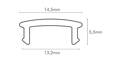 ** Caratteristiche generali ** Composto da: -n. 1 copertura da 2m Assemblati con gli appositi profili di alluminio offrono la possibilità di realizzare installazioni dal design elegante e moderno. Si consiglia l'impiego della serie di nastri con biadesivo JO350 disponibili nelle varie potenze. Il profilo di alluminio non è incluso e deve essere ordinato separatamente scegliendo tra le opzioni correlate. ** Caratteristiche Meccaniche ** Lunghezza profilo: 2m Larghezza: 14.5mm Larghezza interna: 13.2mm Altezza: 5.5mm Diffusore: Policarbonato opaco ** Attenzione ** La copertura illustrata è un componente. Il suo corretto funzionamento con nastri led o moduli led dipende da importanti requisiti di installazione. Utilizzare la copertura solo con nastri ledIP20. Alpha Elettronica declina ogni responsabilità per danni o malfunzionamenti derivati da un uso inappropriato del profilo.