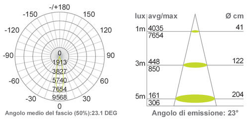 • Angolo di emissione - A fascio medio 20-40°