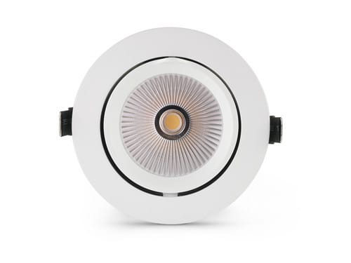 ** Caratteristiche Generali ** Tempo di vita L70B50: 30000h Numero cicli di accensione: 15000 cicli Tipo di led: COB Rischio fotobiologico: Esente ** Caratteristiche di Illuminazione ** Colore: Bianco naturale Flusso: 1700lm CRI: 80 Angolo di emissione:25° Starting time: 0.2s ** Caratteristiche Elettriche ** Potenza: 20W Fattore di potenza PF: 0.9 Corrente ingresso max: 160mA Tens. funzionamento AC: 230Vac Tolleranza d'ingresso: ±10% Frequenza: 50-60Hz Dimmerabile: no Classe isolamento: II Alimentatore: Esterno (incluso) ** Caratteristiche Sorgente Luminosa ** Tensione Led: 33.5Vdc Corrente Led: 500mA Tipo Alimentazione: Corrente Costante Temp. Colore: 4000K ** Caratteristiche Meccaniche ** Altezza: 116mm Diametro: ø130mm Fissaggio: Incasso con clip Montaggio: Incasso Foro incasso: ø120mm Grado di protezione: IP20 Materiale corpo: Alluminio verniciato Colore corpo: Bianco Cornice: Alluminio verniciato Connessioni: Connettori e cavetti inclusi Orientabile: si ** Caratteristiche Termiche ** Temp. di funzionamento: -10 / 40°C