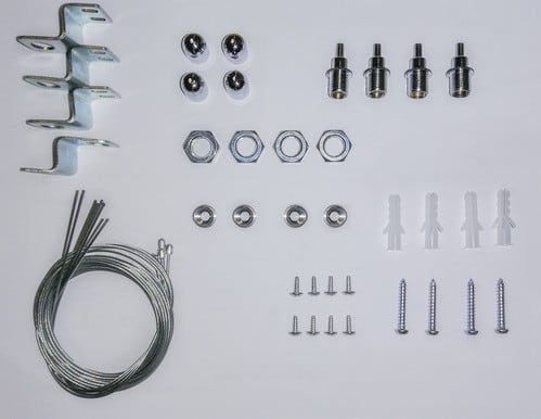 Set di accessori composto da 4 corde per l'installazione a sospensione. Numero di corde: 4 Materiale: acciaio Lunghezza: 1,5m (regolabile) Spessore corda: ø1,5mm Massimo carico ammissibile: 18Kg (175N) Massimo carico di rottura: 90Kg (885N) ** Attenzione ** La corda metallica illustrata è un componente. Il suo corretto funzionamento dipende da importanti requisiti di installazione. Alpha Elettronica declina ogni responsabilità per danni e malfunzionamenti derivati da un non corretto assemblaggio, montaggio o da un uso non corretto del prodotto. La verifica della portata è a carico del cliente.