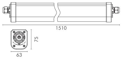 ** Caratteristiche Generali ** Tempo di vita L70B50: 30000h Numero cicli di accensione: 15000 cicli Tipo di led: smd 2835 0.5W Numero Led: 184 Rischio fotobiologico: Esente ** Caratteristiche di Illuminazione ** Colore: Bianco naturale Flusso: 5800lm CRI: 80 Angolo di emissione: 115° ** Caratteristiche Elettriche ** Potenza: 50W Fattore di potenza PF: 0.9 Tens. funzionamento AC: 230Vac Tolleranza d'ingresso: ±10% Frequenza: 50-60Hz Dimmerabile: no Classe isolamento: I Alimentatore: Integrato ** Caratteristiche Sorgente Luminosa ** Tensione Led: 138Vdc Corrente Led: 330mA Tipo Alimentazione: Corrente Costante Temp. Colore: 4000K ** Caratteristiche Meccaniche ** Lunghezza: 1510mm Larghezza: 63mm Altezza: 75mm Fissaggio: Clip Incluse Montaggio: A soffitto Grado di protezione: IP65 Resistenza agli urti: IK10 Materiale corpo: Plastica Colore corpo: Bianco Diffusore: Policarbonato opaco Connessioni: Morsetti a pressione Orientabile: no ** Caratteristiche Termiche ** Temp. di funzionamento: -10 / 40°C