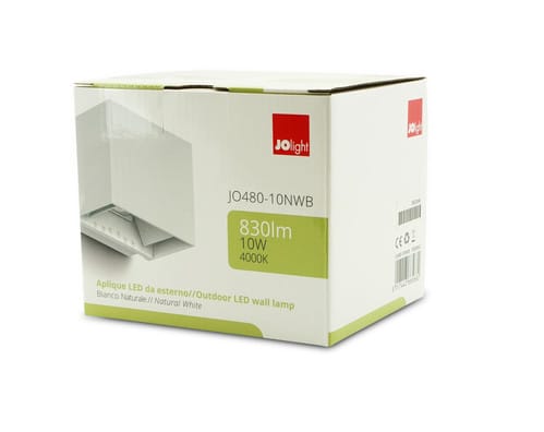 ** Caratteristiche Generali ** Tempo di vita L70B50: 30000h Numero cicli di accensione: 15000 cicli Rischio fotobiologico: Esente ** Caratteristiche di Illuminazione ** Colore: Bianco naturale Flusso: 830lm CRI: 80 Angolo di emissione: 120° Starting time: 0.2s ** Caratteristiche Elettriche ** Potenza: 10W Fattore di potenza PF: 0.9 Tens. funzionamento AC: 230Vac (200‑240Vac) Tolleranza d'ingresso: -10% +6% Dimmerabile: no Classe isolamento: I Alimentatore: Integrato ** Caratteristiche Sorgente Luminosa ** Temp. Colore: 4000K ** Caratteristiche Meccaniche ** Lunghezza: 96.8mm Larghezza: 120mm Altezza: 100mm Fissaggio: Tramite viti Grado di protezione: IP65 Resistenza agli urti: IK06 Materiale corpo: Alluminio verniciato Colore corpo: Bianco Cornice: Alluminio verniciato Orientabile: no ** Caratteristiche Termiche ** Temp. di funzionamento: -10 / 40°C Angolo di emissione: Regolabile da 0° a 120°