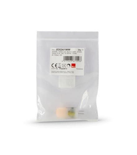 ** Caratteristiche Generali ** Tempo di vita L70B50: 20000h Numero cicli di accensione: 10000 cicli Fattore di sopravvivenza: 0.96 Tipo di led: COB Numero Led: 1 Rischio fotobiologico: Esente ** Caratteristiche di Illuminazione ** Colore: Bianco caldo Flusso: 350lm CRI: 80 Starting time: 0.2s Fattore mantenimento flusso: 0.96 Uniformità colore (SDCM): 6 ** Caratteristiche Elettriche ** Classe energetica: F Potenza: 3W Tens. funzionamento DC: 10‑30Vdc Tens. funzionamento AC: 12Vac (8‑15Vac) Frequenza: 50-60Hz Dimmerabile: si ** Caratteristiche Sorgente Luminosa ** Temp. Colore: 2700K ** Caratteristiche Meccaniche ** Attacco: G4 Lunghezza: 16mm Larghezza: 16mm Altezza: 41mm Diametro: ø16mm ** Caratteristiche Termiche ** Temp. di funzionamento: -10 / 40°C ** Attenzione ** Non utilizzare con dimmer elettronici o trasformatori elettronici.