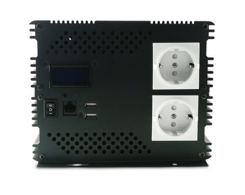 Inverter adatto per impianto fotovoltaico ad isola (stand-alone). ** Caratteristiche Generali ** Tipologia inverter: semplice Raffreddamento: Convezione forzata - ventola automatica ** Caratteristiche Inverter ** Forma d'onda in uscita: Sinusoidale pura Frequenza: 50Hz Distorsione d'onda THD: 150Ah Consumo a vuoto in stand by: