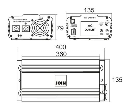 Adatto per carichi resistivi. Inverter adatto per impianto fotovoltaico ad isola (stand-alone). ** Caratteristiche Generali ** Tipologia inverter: semplice Raffreddamento: Convezione forzata - ventola automatica ** Caratteristiche Inverter ** Forma d'onda in uscita: Sinusoidale modificata Frequenza: 50Hz Tensione d'ingresso: 24Vdc Tensione d'uscita: 230Vac Potenza d'uscita di picco: 3000W Potenza d'uscita nominale: 1500W Efficienza massima: 85% Corrente in ingresso: 63A Capacità minima batteria: >70Ah Consumo a vuoto in stand by: