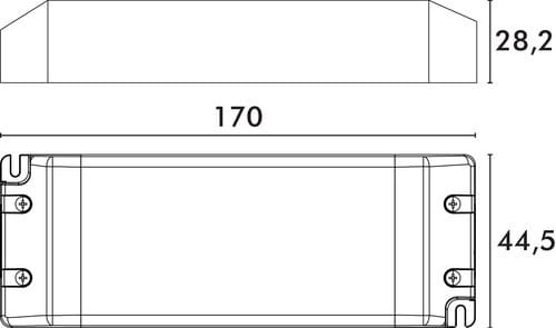 ** Caratteristiche Generali ** Tipo regolazione: CV Classe isolamento: II Correzione PF: Con PFC Dimmerabile: no Grado Protezione: IP20 ** Caratteristiche Elettriche ** Tensione d'ingresso: 220‑240Vac Tolleranza d'ingresso: -10% +6% Frequenza: 50/60Hz Potenza: 75W Tensione d'uscita: 24V Corrente d'uscita: 3125mA Regolazione di carico: ±1% Regolazione di linea: ±1% Tolleranza tensione d'uscita: ±5% Protezioni: sovraccarico, sovratensione, sovratemperatura, corto circuito ** Caratteristiche Meccaniche ** Dimensioni (LxWxH): 170 x 44.5 x 28.2mm Raffreddamento: passivo Peso: 0.28kg Materiale contenitore: Plastico Colore: Bianco Connessioni: morsetti a vite ** Caratteristiche Termiche ** Temperatura di lavoro: -20/45°C Temperatura involucro: 90°C Temperatura di stoccaggio: -40/85°C