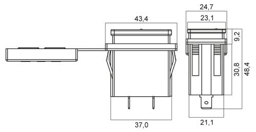 ** Caratteristiche Generali ** Tecnologia: dc-dc switching non isolato Grado Protezione: IP54 ** Caratteristiche Elettriche ** Tensione d'ingresso: 12‑28Vdc Potenza: 21W Tensione d'uscita: 5V Corrente d'uscita: 4200mA Tolleranza tensione d'uscita: ±5% Protezioni: corto circuito ** Caratteristiche Meccaniche ** Dimensioni (LxWxH): 43.4 x 24.7 x 48.4mm Materiale contenitore: Plastico Colore: Nero Connessioni: faston 6,3 Connettori: USB tipo"A" ** Caratteristiche Termiche ** Temperatura di lavoro:0/40°C