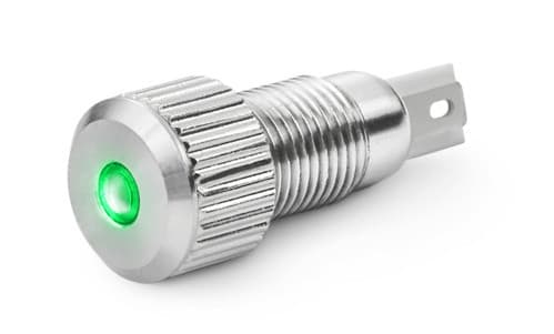 ** Caratteristiche Generali ** Tempo di vita L70B50: 50000h Tipo di led: 5mm ** Caratteristiche di Illuminazione ** Colore: Verde ** Caratteristiche Elettriche ** Corrente ingresso max: 15mA Tens. funzionamento DC: 24Vdc ** Caratteristiche Meccaniche ** Numero di pin: 2 Lunghezza: 27.2mm Diametro: ø11mm Montaggio: a pannello Foro incasso: ø8mm Grado di protezione: IP65 Materiale corpo: Ottone nichelato Colore corpo: Lucido Connessioni: a saldare ** Caratteristiche Termiche ** Temp. di funzionamento: -10 / 40°C