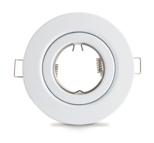 Caratteristiche Porta lampada professionale in metallo adatto per installazioni da incasso. Ghiera interna orientabile. Rotazione: -35° +35° Fissaggio lampada tramite molletta. Adatto per uso interno. ** Caratteristiche Elettriche ** Potenza max installabile: 50W ** Caratteristiche Meccaniche ** Altezza: 43.5mm Diametro: ø109mm Foro incasso: ø75mm Materiale corpo: Zamak (Zinco-Alluminio) Colore corpo: Bianco Finitura: Opaca Orientabile: si