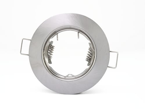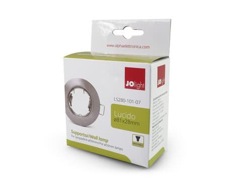 Caratteristiche Porta lampada professionale in metallo adatto per installazioni da incasso. Fissaggio lampada tramite molletta. Adatto per uso interno. ** Caratteristiche Elettriche ** Potenza max installabile: 50W ** Caratteristiche Meccaniche ** Altezza: 28mm Diametro: ø81mm Foro incasso: ø65mm Materiale corpo: Acciaio Colore corpo: Satinato Finitura: Lucida Orientabile: no