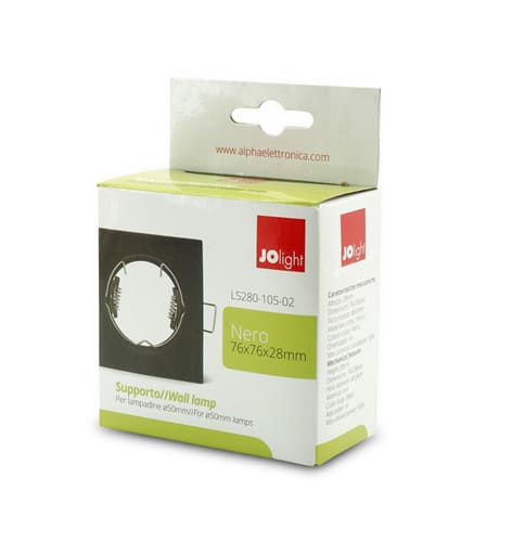 Caratteristiche Porta lampada professionale in metallo adatto per installazioni da incasso. Fissaggio lampada tramite molletta. Adatto per uso interno. ** Caratteristiche Elettriche ** Potenza max installabile: 50W ** Caratteristiche Meccaniche ** Lunghezza: 76mm Larghezza: 76mm Altezza: 28mm Foro incasso: ø65mm Materiale corpo: Acciaio Colore corpo: Nero Finitura: Opaca Orientabile: no