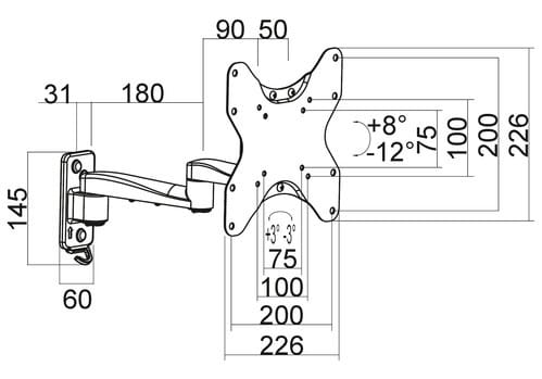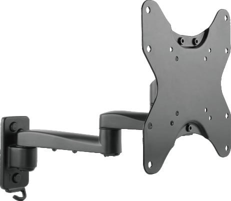 Possibile rimuovere i bracci e scegliere la configurazione di installazione. ** Caratteristiche Generali ** Funzionalità: Orientabile Tipologia montaggio: Da parete Adatto per tv da: 23"- 42" Compatibilità VESA Max: 200x200mm Compatibilità VESA: 75x75, 100x100, 200x100, 200x200 Estensione: Braccio doppio Rotazione (Pivot): -3° +3° Inclinazione (Tilt): -12° +8° Orientamento (Swivel): -90° +90° Colore: Nero ** Caratteristiche Meccaniche ** Avanzamento TV: Manuale Materiale: Acciaio Portata: 20Kg Bolla di livello: No Sistema di bloccaggio: No Gestione cavi: Si Innesto a baionetta: No Kit di montaggio: Incluso