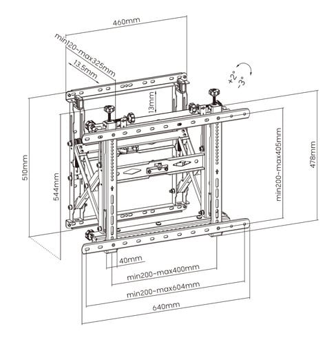 ** Caratteristiche Generali ** Tipologia montaggio: Da parete Adatto per tv da: 45"- 70" Compatibilità VESA Max: 600x400mm Compatibilità VESA: 200x200, 400x200, 300x300, 300x200, 400x300, 400x400, 600x400 Estensione: Braccio doppio Colore: Nero ** Caratteristiche Meccaniche ** Avanzamento TV: Manuale Materiale: Acciaio Distanza fori: 604x405mm Portata: 70Kg