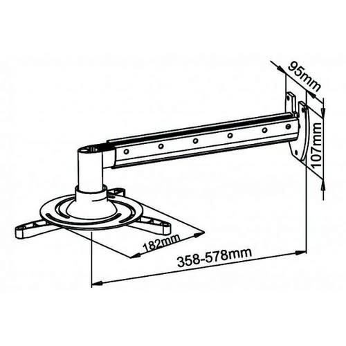 Supporto per proiettori. Estensione da 35,8cm a 57,8cm. ** Caratteristiche Generali ** Tipologia montaggio: Da parete Rotazione (Pivot): 0° Inclinazione (Tilt): 30° Orientamento (Swivel): 360° Colore: Grigio ** Caratteristiche Meccaniche ** Avanzamento TV: Manuale Materiale: Alluminio e acciaio Dimensioni (WxH): 578mm Distanza dal muro: 35.8cm Portata: 15Kg Peso prodotto: 1.9Kg Bolla di livello: No Sistema di bloccaggio: No Gestione cavi: Si Innesto a baionetta: No Kit di montaggio: Incluso