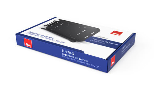Il supporto SU670-G è stato realizzato per un facile montaggio del tuo decoder SkyQ. Potrai posizionarlo dietro la TV sfruttando i fori VESA oppure installarlo a parete con un fissaggio stabile e sicuro. Grazie a questo supporto potrai nascondere i cavi di collegamento, risparmiare spazio e tenere tutto in ordine. La staffa avvolge il decoder per un fissaggio ottimale senza bloccare le porte e i sensori. ** Caratteristiche Generali ** Tipologia montaggio: Da parete Compatibilità VESA: 100x100, 150x150 Compatibile con: Decoder Sky Q Estensione: Nessuna Rotazione (Pivot): 0° Inclinazione (Tilt): 0° Orientamento (Swivel): 0° Colore: Nero ** Caratteristiche Meccaniche ** Bolla di livello: No Sistema di bloccaggio: No Gestione cavi: No Innesto a baionetta: No Kit di montaggio: Non incluso Il supporto da parete SU670-G è compatibile con il decoder Sky Q. Sky® è un marchio registrato di proprietà di società terze, che non hanno alcun collegamento con Alpha Elettronica S.r.l. L’indicazione dello stesso è data solo ed esclusivamente per identificare i decoder compatibili con il supporto da parete.