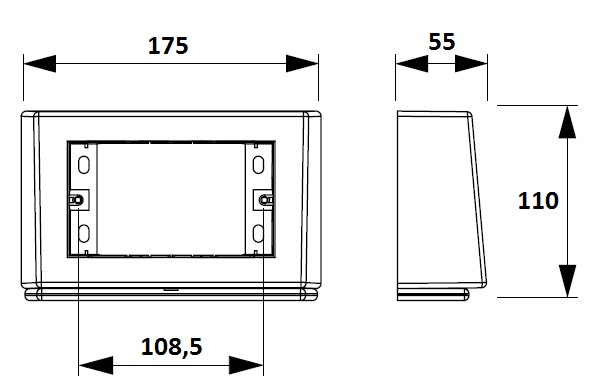 Scatole porta apparecchi per applicazione esterna al canale, per 4 moduli con interasse 108,5 e riduttore a 3 moduli con interasse 83,5 mm, colore Bianco puro RAL9010