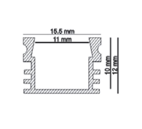 Profilo in alluminio anodizzato, per montaggio superficiale. Con diffusore in policarbonato satinato. Lunghezza: 2 m. Dimensioni: 15,5 x 12 mm.