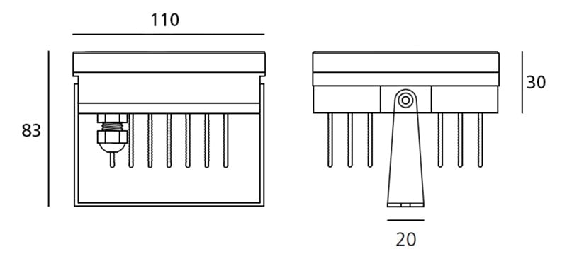 Proiettori orientabili da terra/ parete /soffitto da esterno a sorgente LED. Materiali: corpo e attacco terra/ parete in alluminio verniciato, schermo in vetro temprato. Lenti in PMMA - Medium spot. Ottica Medium 32°. Lampada: Power Supply: Elettronico fornito a parte. Watt: 12W. Tensione di alimentazione: 24Vdc. Flusso Luminoso (lm): 711lm. CCT: 3000K. Efficiency: 90%. Efficacy: 59.28lm/W. CRI: 80.