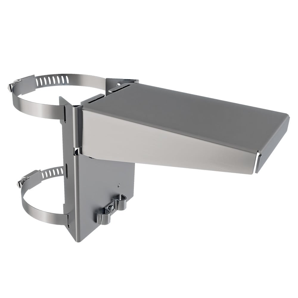 Staffa di protezione dagli agenti atmosferici in acciaio inossidabile, Consente il montaggio su palo di rilevatori di movimento per esterni B.E.G., Incluse viti di fissaggio del Rilevatore di presenza a soffitto B.E.G. , Verificare la compatibilita nell'elenco degli accessori previsti per il rilevatore scelto, Adatto per montaggio con ingresso cavi posteriore o laterale, Fermacavi per lo scarico della trazione dei cavi di collegamento, Comprese 2 fascette con sgancio rapido