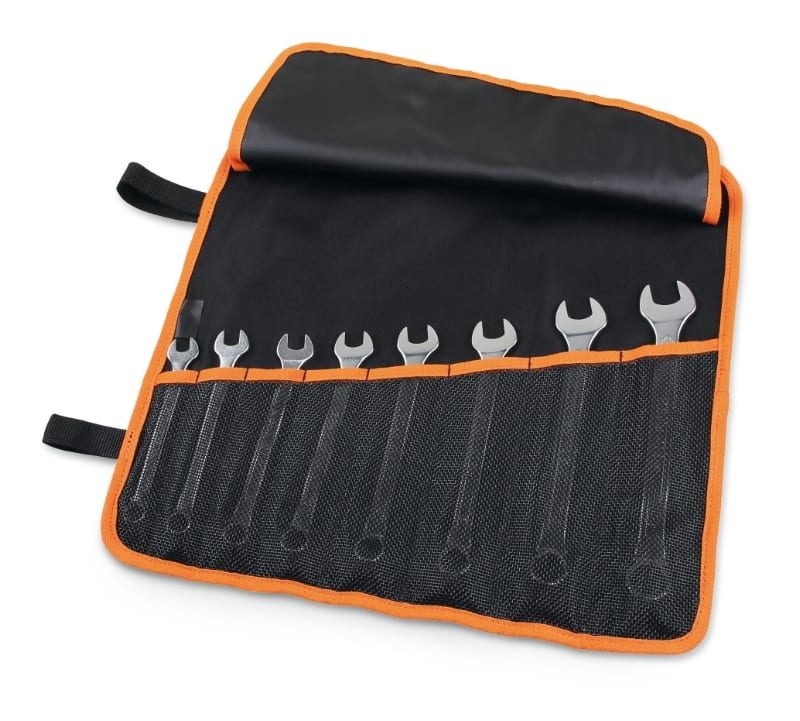 Serie di 8 chiavi combinate a testa ribassata in busta avvolgibile di poliestere resistente _x000D_ 10-11-12-13-14-15-17-19 mm