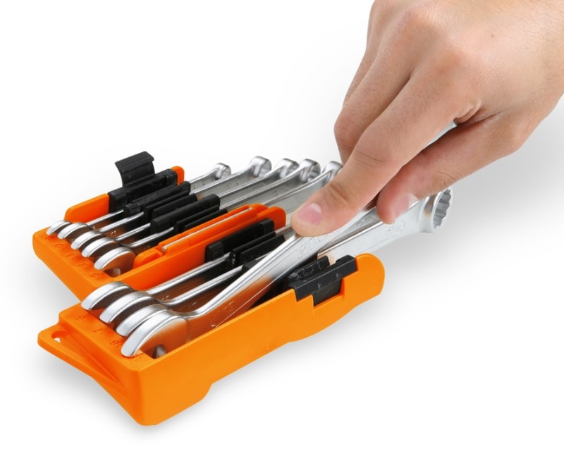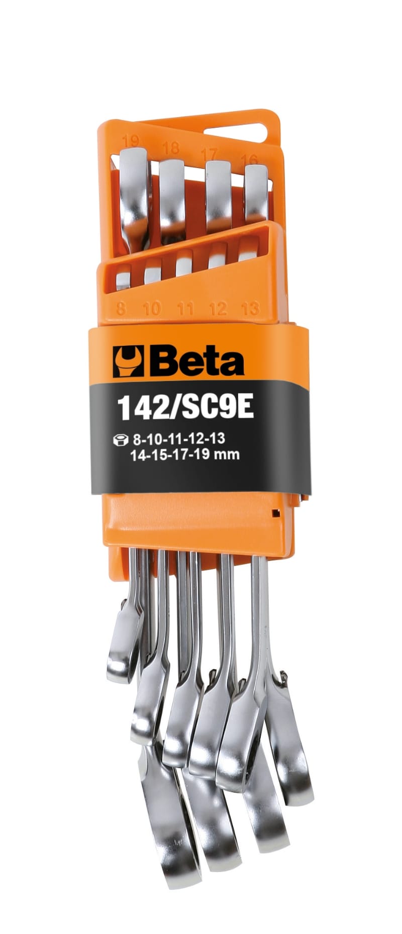 Serie di 9 chiavi combinate a cricchetto reversibile con supporto compatto_x000D_ 8-10-11-12-13-16-17-18-19 mm