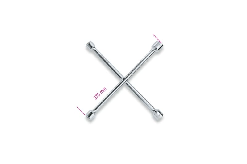 Chiave a croce in acciaio per allentare e svitare i dadi delle ruote in maniera rapida e sicura. La chiave si compone di 4 inserti per ruote da 17-19-21-23 mm per essere utilizzata sui modelli piu diffusi.