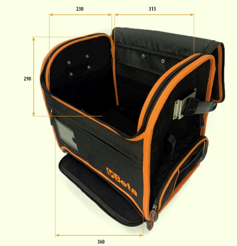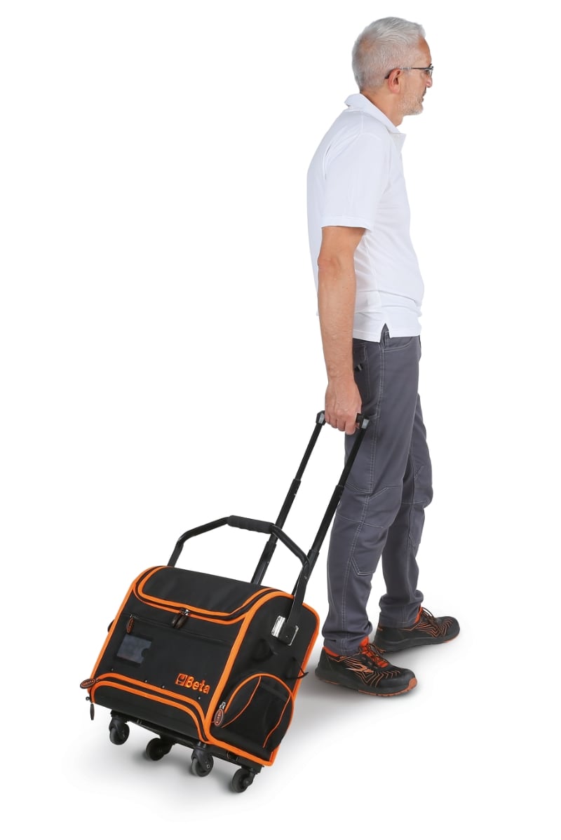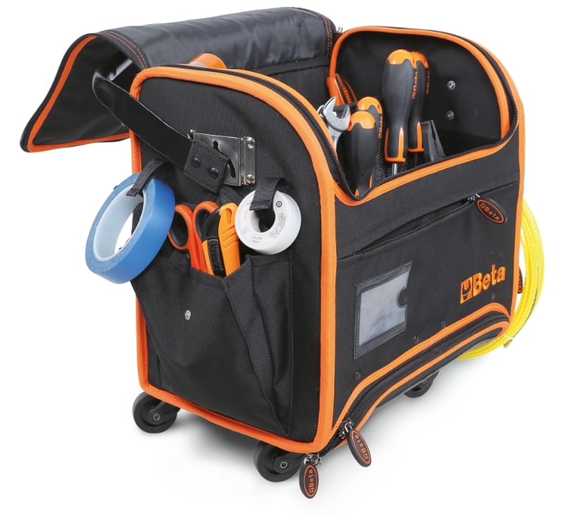 Ideale per elettricisti Caratteristiche: ? Struttura rigida ? Manico telescopico di trasporto ? 4 ruote piroettanti ? 1 pannello interno portautensili removibile ? Tasca frontale con porta badge ? Doppio fondo con portaminuteria compreso ? 2 tasche esterne laterali ? 2 ganci porta sonda tirafili ? Manico inclinabile per facilitare l'accesso agli utensili ? Possibilita di chiusura con lucchetto (non compreso) ? 380x250x430 mm - ? 4,7 kg