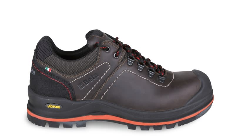 Tomaia:? Pelle pieno fiore ingrassata idrorepellente ? Copripuntale di rinforzo in poliuretano ? Inserto antiabrasione sul tallone. Suola:? Intersuola in poliuretano espanso a basso peso specifico ? Battistrada in gomma VIBRAM? ;Ranger;, resistenteal calore da contatto HRO e studiata per offrire il massimo delle prestazioni. Puntale:Fibra di vetro, resistenza 200 joule Antiperforazione:Fibra composita con trattamenti ceramici Sottopiede:Tessuto nero accoppiato a PE ed EVA, materiale che non sideforma ritornando alla forma iniziale quando il piede viene estratto dalla calzatura. Forato in pianta per garantire maggiore traspirazione e dotato di inserto sul tallone ABS con densita differente per migliorare l'assorbimento degli urti con il terreno. Peso:730 (g) Taglie:EU: 39-48 UK: 6-13