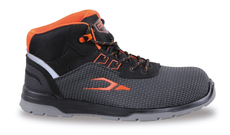 Tomaia:Tessuto altamente resistente all'abrasione con supporto di stabilita al tallone Suola:Poliuretano bidensita Puntale:Materiale polimerico, resistenza 200 Joule Antiperforazione:Fibra composita con trattamenti ceramici Sottopiede:Anatomico con rialzo ammortizzante nella zona del tallone Peso:580 (g) Taglie:EU: 35-48 UK: 2,5-13