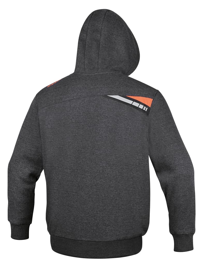 Composizione:60% cotone, 40% poliestere, 280 g Design:? Polsini elasticizzati ? Due ampie tasche in vita con chiusura zip ? Tasca al petto con chiusura zip verticale ? Cappuccio fisso con cordini di regolazione tondi ? Vita elasticizzata Colore:Grigio Taglie:XS, S, M, L, XL, XXL, XXXL