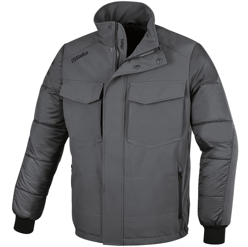 Composizione:? Imbottitura in GRAPHENE 80 g, ? Tessuto esterno: fronte e spalle: in tessuto softshell 96% poliestere, 4% spandex, retro e maniche: in 100% nylon 20D ? Tessuto interno: 100% poliestere Design:? Chiusura frontale doppia con zipe bottoni automatici ? Due ampie tasche in vita con chiusura zip e garage di protezione ? Due tasche al petto con patella e chiusura a velcro e una con taschino laterale con chiusura zip ? Una tasca interna ? Inserto elastico sul giromanica ? Regolatori a coulisse in vita Colore:Fronte: grigio antracite Retro e maniche: nero Taglie:S, M, L, XL, XXL, XXXL