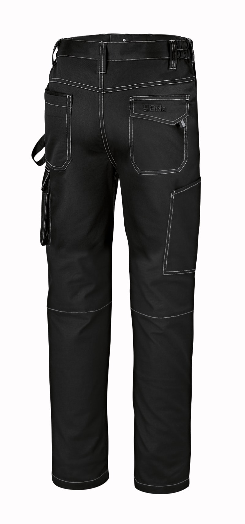 Composizione:? T/C Twill, 63% poliestere, 34% cotone, 3% tessuto elasticizzato, 200 g Design:? Slim Fit ? Cavallo antistrappo ? Vita elasticizzata ai lati ? Due ampie tasche anteriori, di cui una con taschino ? Due tasche posteriori con chiusura a strappo ? Tascone laterale sinistro con chiusura a strappo, dotato di inserto portabadge ? Tasca porta metro e fascia porta martello ? Inserti porta ginocchiere Colore:Nero Taglie:XS, S, M, L, XL, XXL, XXXL 46, 48, 50, 52, 54, 56, 58