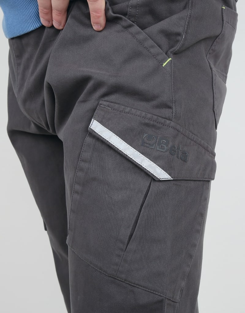 MATERIALI:100% cotone, 240g/m2 CARATTERISTICHE:? Slim Fit ? Tessuto 100% cotone ? Vita elasticizzata ? Due tasche in vita ? Due tasche posteriori ? Due tasche laterali con chiusura con bottone automatico ? Inserti reflex COLORE:grigio con dettagli verde fluo TAGLIE:XS, S, M, L, XL, XXL, XXXL, XXXXL 46, 48, 50, 52, 54, 56, 58, 60
