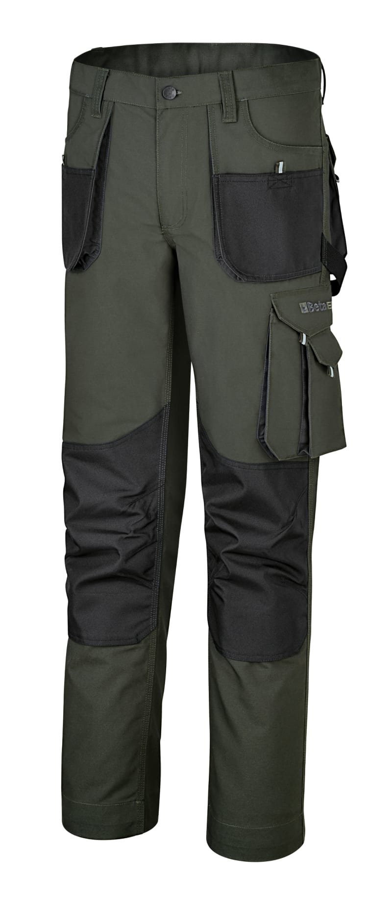Composizione:T/C canvas, 65% poliestere, 35% cotone, 260 g Design:? Inserti e ginocchiere in ?Oxford? poliestere/PU, 220 g ? Chiusura metal zip ? Due profonde tasche anteriori dotate di inserti porta minuteria con chiusura a strappo ? Tascone laterale sinistro con chiusura a strappo dotato di taschino porta cellulare ed inserto porta badge ? Tasconi posteriori con rinforzi in ?Oxford? e chiusura a strappo ? Tasca porta metro e nastro porta martello ? Tasche per ginocchiere Colore:Verde Taglie:XS, S, M, L, XL, XXL, XXXL, XXXXL 46, 48, 50, 52, 54, 56, 58, 60