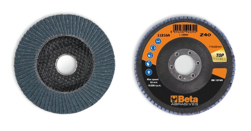 TOP LINE Caratteristiche: ? Indicati per sbavature, smerigliature e finiture di superfici ? Da utilizzare con smerigliatrici portatili angolari ? Dischi professionali utilizzabili per operazioni su acciai inossidabili, metalli ferrosi e non ferrosi. ? Le grane piu grosse sono indicate per lavori di smerigliatura e sgrossatura, le grane piu fini sono invece particolarmente adatte a lavori di finitura. ? Esecuzione piana ? ? 115 mm