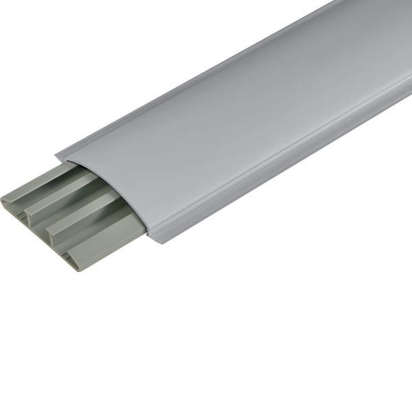 Canale porta cavi per installazione sopra pavimento, completo di base e coperchio. Con fondo di b75 x h17 mm e 3 scomparti, il coperchio in PVC rigido color grigio RAL 7030 di 97 mm ha bordi coestrusi in PVC morbido trasparente per migliorare la stabilità a pavimento. Resistente a impatti IK08 e conforme al filo incandescente fino a 960 °C (GWT EN 60695-2-11). Coperchi smontabili con attrezzo. Grado di protezione IP40.