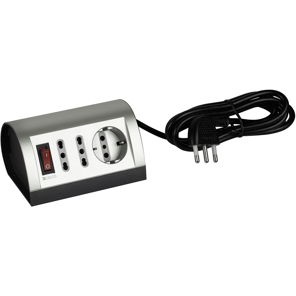 Multipresa da scrivania precablata con prese bipasso 10/16A, una presa tedesca P30, interruttore luminoso, con 2 m di cavo, 250 Va.c.- tech