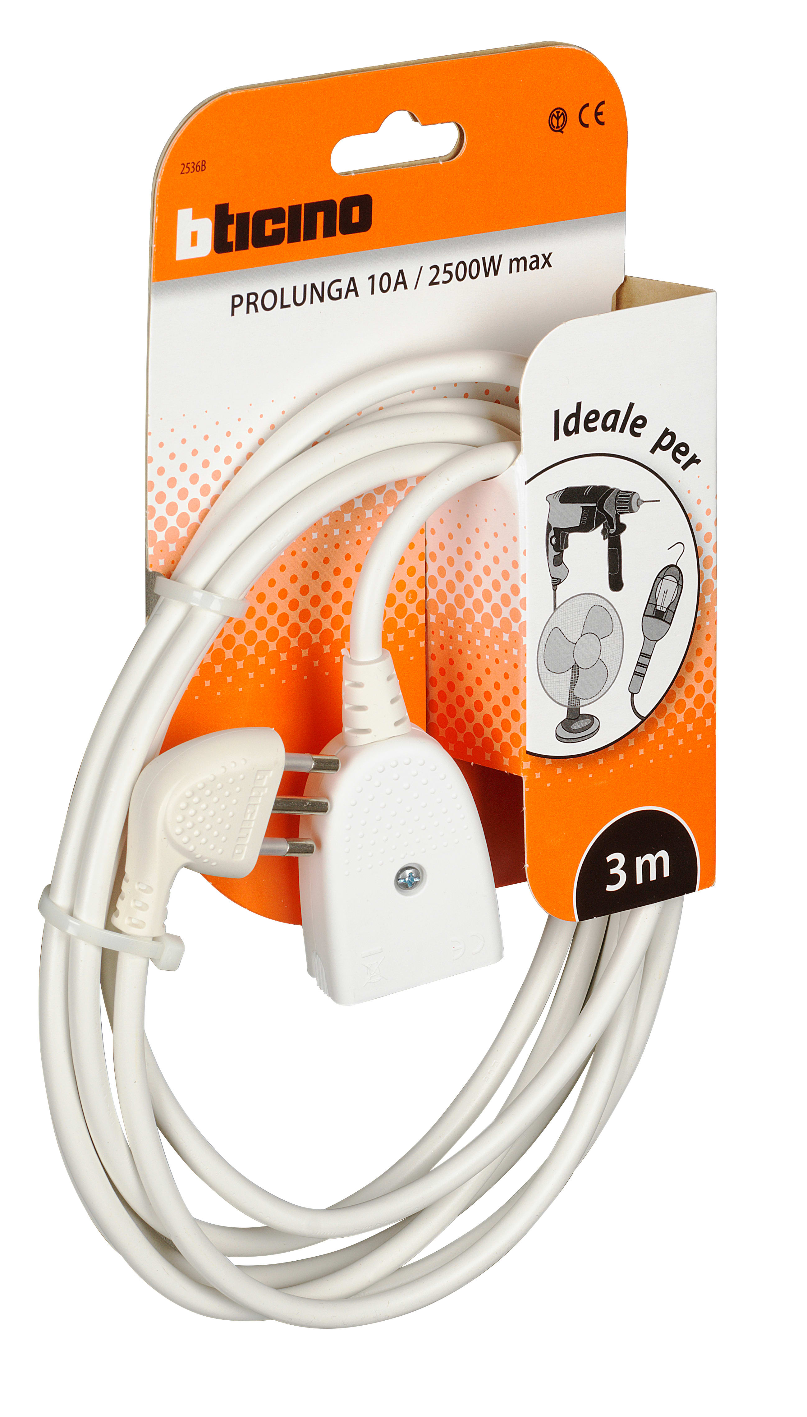 BTICINO - BTI2536B KIT - PROLUNGA 3M 2P+T SP./PR.10A BIANCA - 2536B
