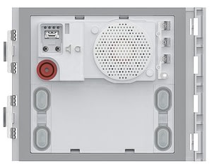 Modulo fonico per la realizzazione di impianti citofonici e videocitofonici 2 fili. Dotato di regolazioni volume altoparlante e microfono. Gestisce fino ad un massimo di 100 chiamate a pulsanti utilizzando moduli pulsanti su doppia fila aggiuntivi. Consente l\'attivazione di una elettroserratura collegata direttamente ai morsetti S+ ed S- (18 V 4 A impulsivi - 250 mA mantenimento su 30 ohm max) ed il collegamento di un pulsante apriporta locale sui morsetti PL. Predisposto per alimentazione supplementare. Dotato di LED frontali per la segnalazione dello stato di funzionamento: apriporta, comunicazione attiva, chiamata inoltrata e sistema occupato. Sensore ottico integrato per l\'accensione della retroilluminazione notturna. Da completare con frontale di finitura. Il dispositivo può essere configurato fisicamente oppure tramite PC e software TiSferaDesign.
