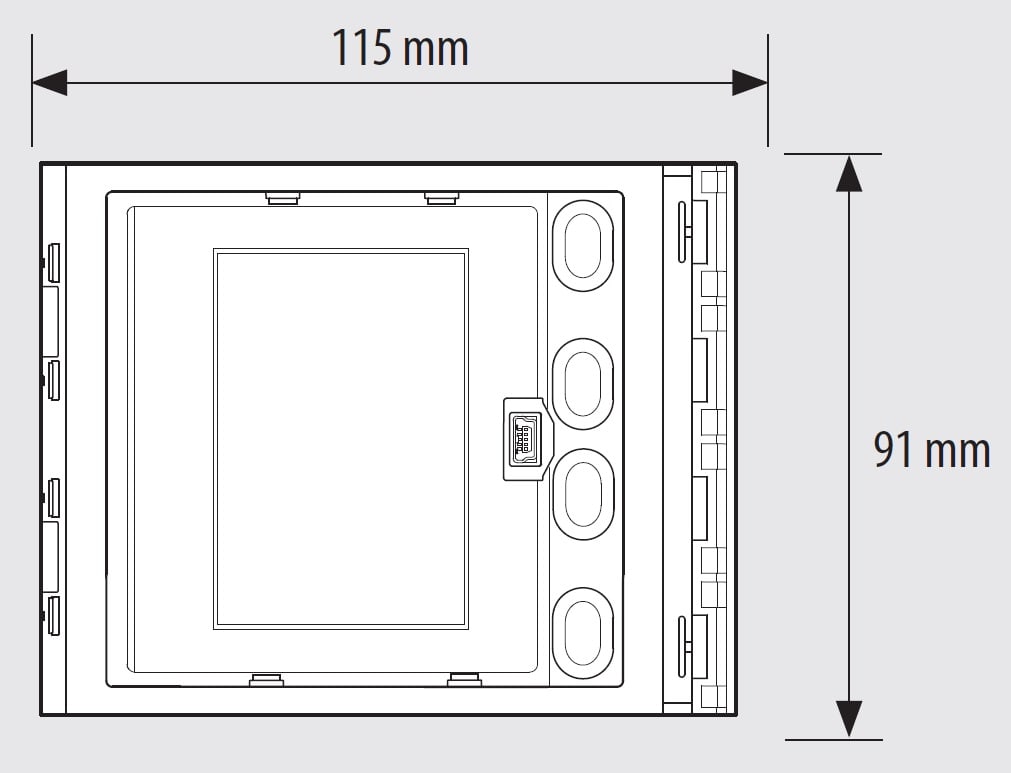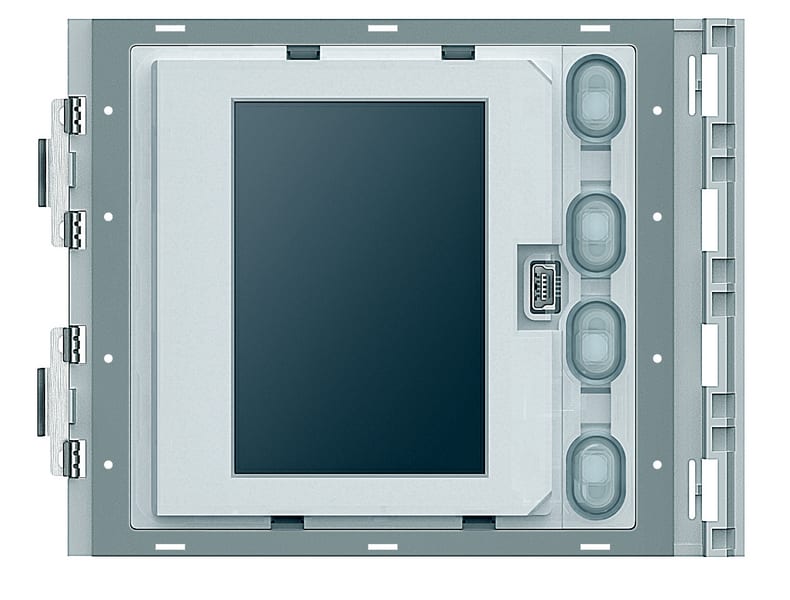 Modulo con display grafico da abbinare al modulo fonico 351100 oppure ai moduli audio video 351200 - 351300 (collegamento tramite multicavo fornito a corredo). Può funzionare in due modalità: chiamata da rubrica o chiamata digitale. La chiamata da rubrica consente l’invio della chiamata scorrendo sul display i nominativi associati ai residenti. È possibile memorizzare 4000 nominativi residenti. In abbinamento al modulo tastiera 353000 è possibile effettuare anche la chiamata diretta all’appartamento, semplicemente componendo il numero corrispondente al residente. La chiamata digitale, viene effettuata sempre in abbinamento con il modulo tastiera 353000 tramite digitazione di codice numerico. Si consiglia di affiancare alla pulsantiera uno o più moduli targa 352200 per visualizzare la corrispondenza tra codici numerici e nominativi utenti. È possibile programmare i nominativi nella rubrica in due differenti modalità: inserimento manuale tramite i pulsanti del modulo display oppure inserimento tramite PC con software specifico effettuando il download del file al modulo display (CONSIGLIATO). La mancanza di alimentazione dell’impianto NON causa la perdita dei dati memorizzati. Da completare con frontale di finitura.
