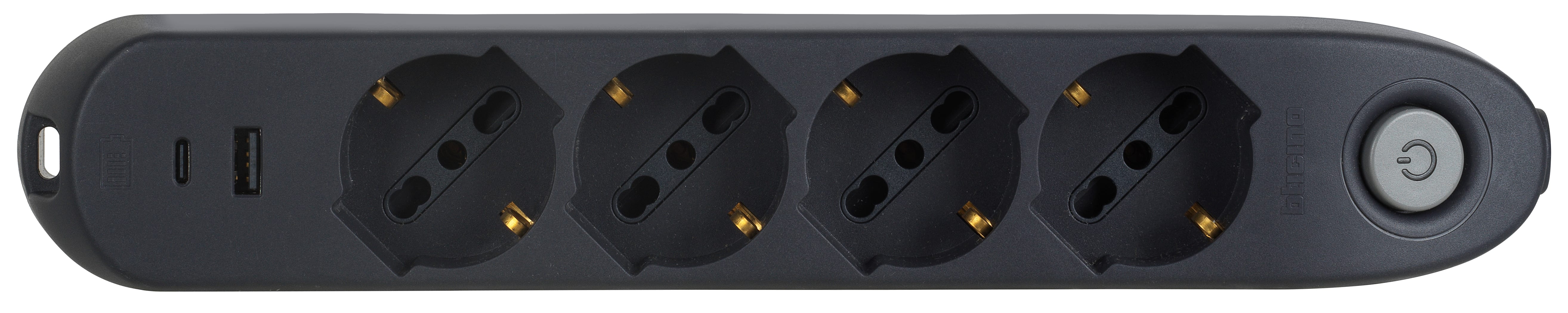 BTICINO - BTI3684GBU MULTIPRESA 4 SCHUKO/BIPAS+INTER+2USB GRI - 3684GBU