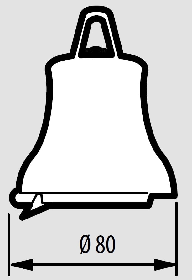 Campana in bronzo diametro 80 mm completa di staffa per fissaggio da parete. Alimentazione 12 Vac - 300 mA