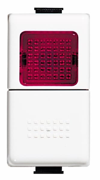 pulsante 1P NO 250V ac 10A colore bianco e portalampada di segnalazione 24V 1,5W - diffusore rosso